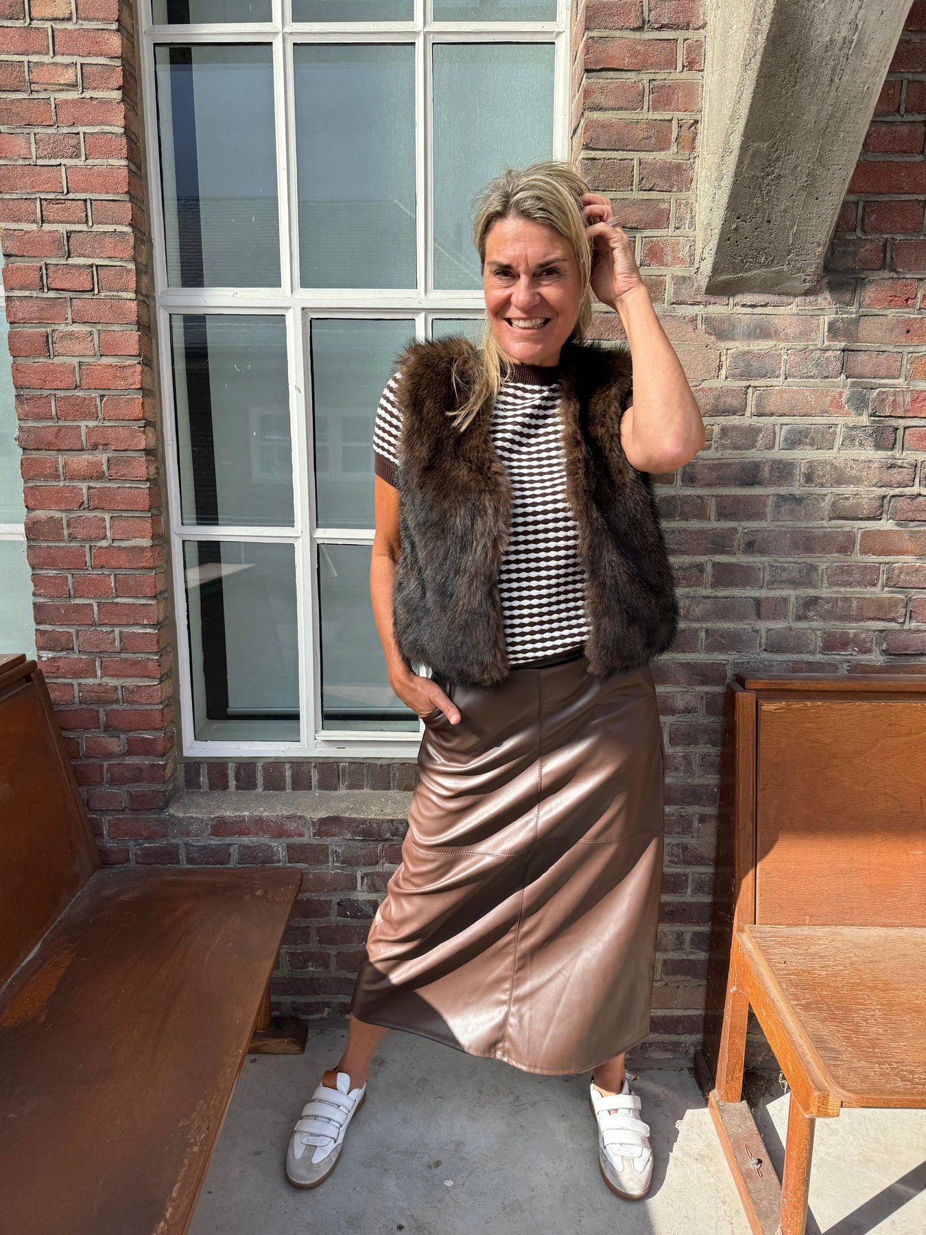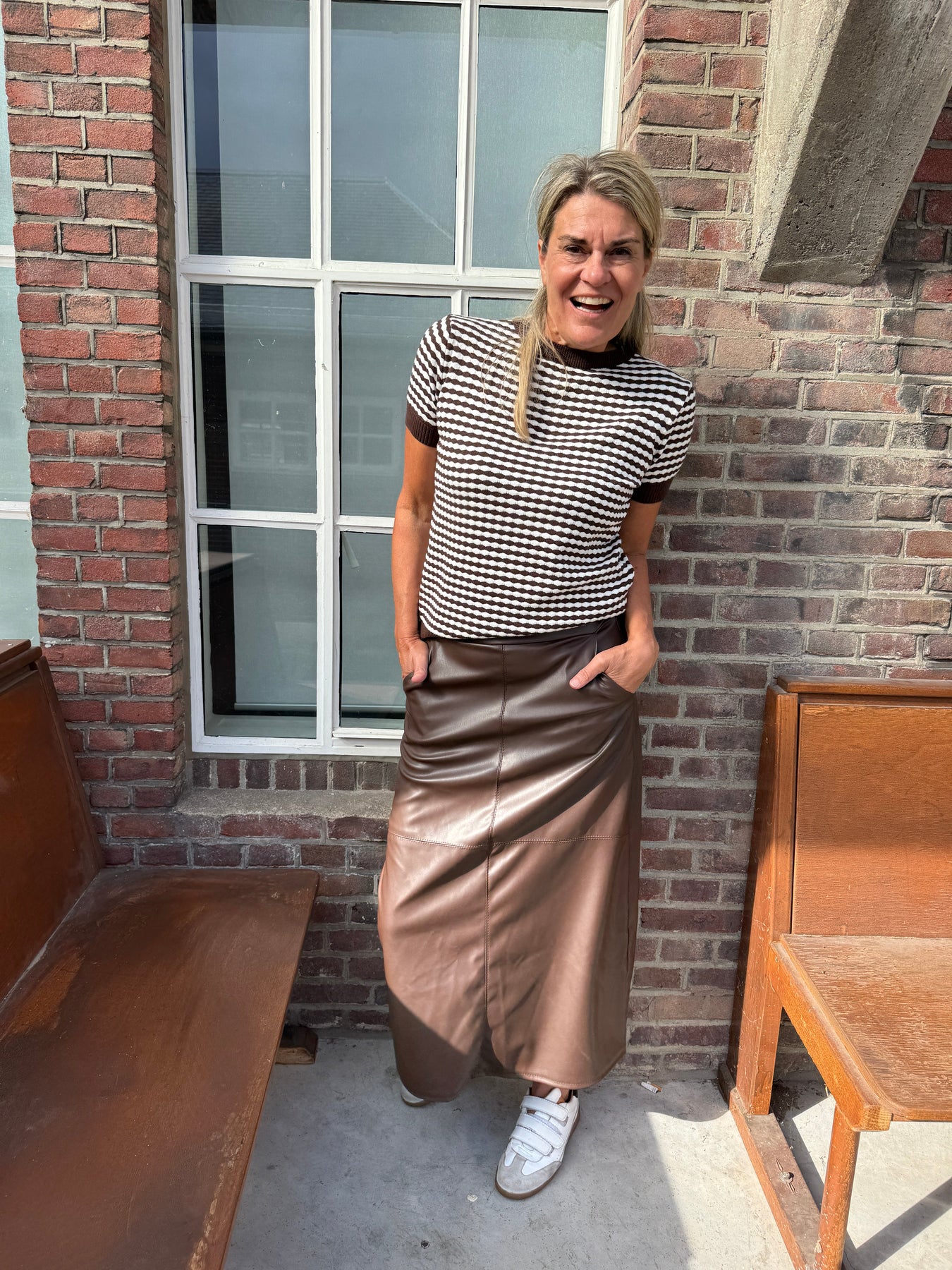 Spódnica Tokyo to elegancka skórzana spódnica, zaprojektowana z myślą o stylu i komforcie. Dzięki miękkiej podszewce zapewnia przyjemne noszenie przez cały dzień i luksusowe odczucia. Ta spódnica jest idealna zarówno na codzienne stylizacje, jak i na specjalne okazje, łatwo łącząc się z bluzkami, swetrami i topami, tworząc wszechstronną garderobę.